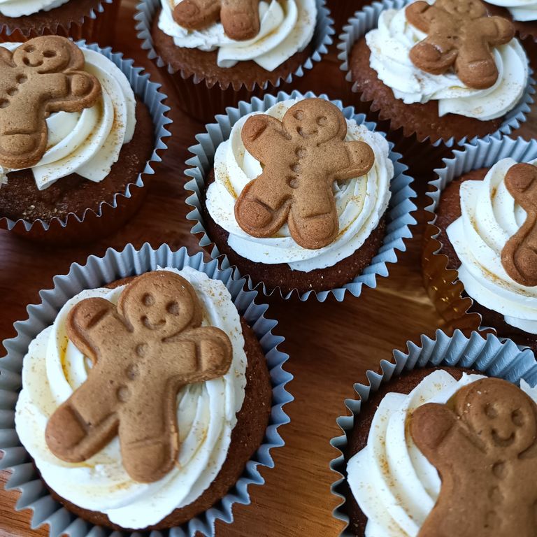 Packed full of spicy ginger, cinnamon and nutmeg, these cupcakes are festive and delicious! Topped with a ginger & vanilla buttercream, and a mini gingerbread man.